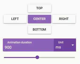 Add one of many appear animations to any element on any page in your shop. Choose between Bounce in, Fade in, Zoom in, Back in, Slide in, Flip in, Light speed in, Roll in animation and customize its direction and duration.